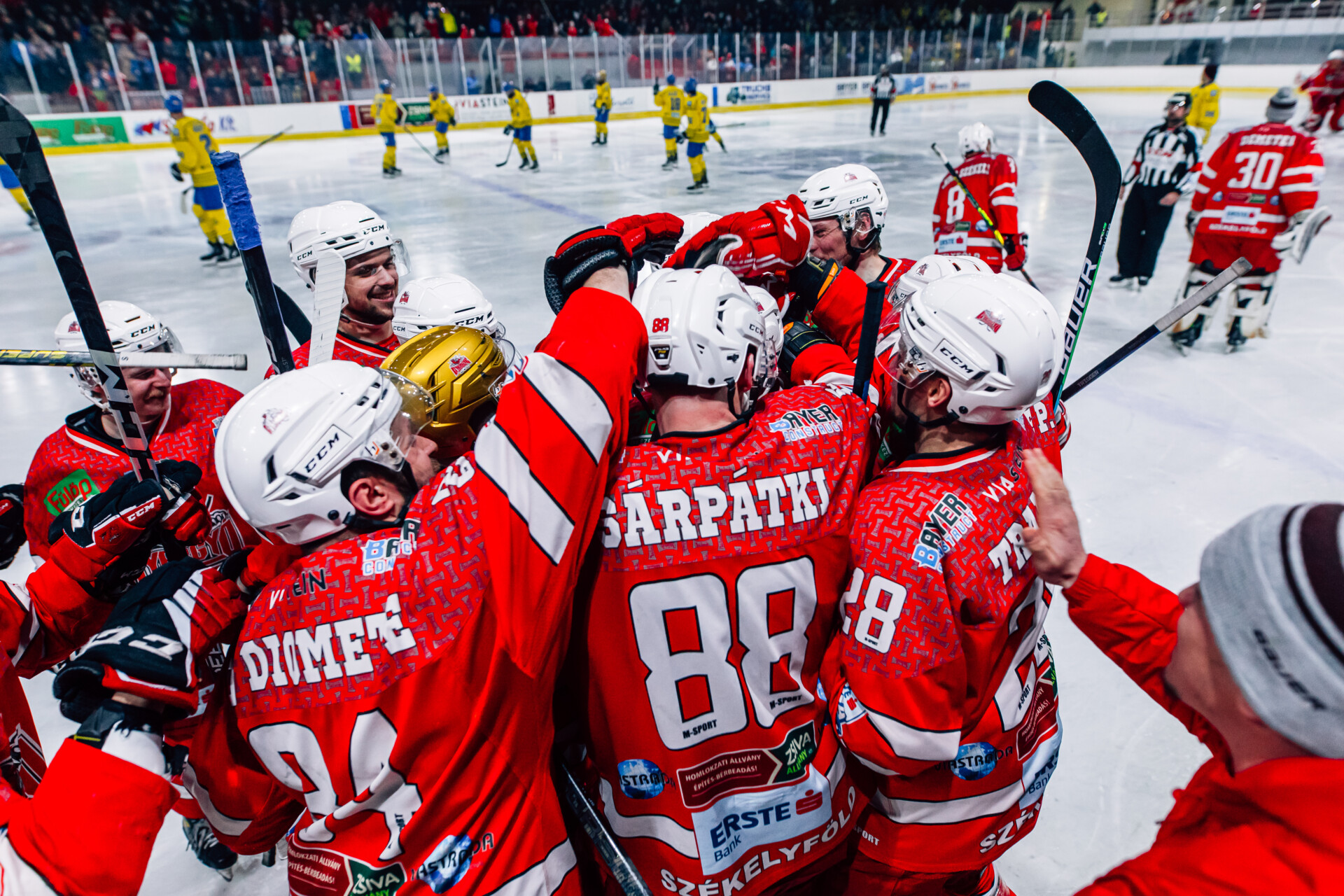 In the Erste Liga playoffs, we entered as the second seed. We first defeated DVTK Jegesmedvék and then Corona Brașov, both by 4–1 series margins. In a memorable final, we faced Sportklub Csíkszereda and emerged victorious with a 4–2 series win—raising the trophy on their home ice.