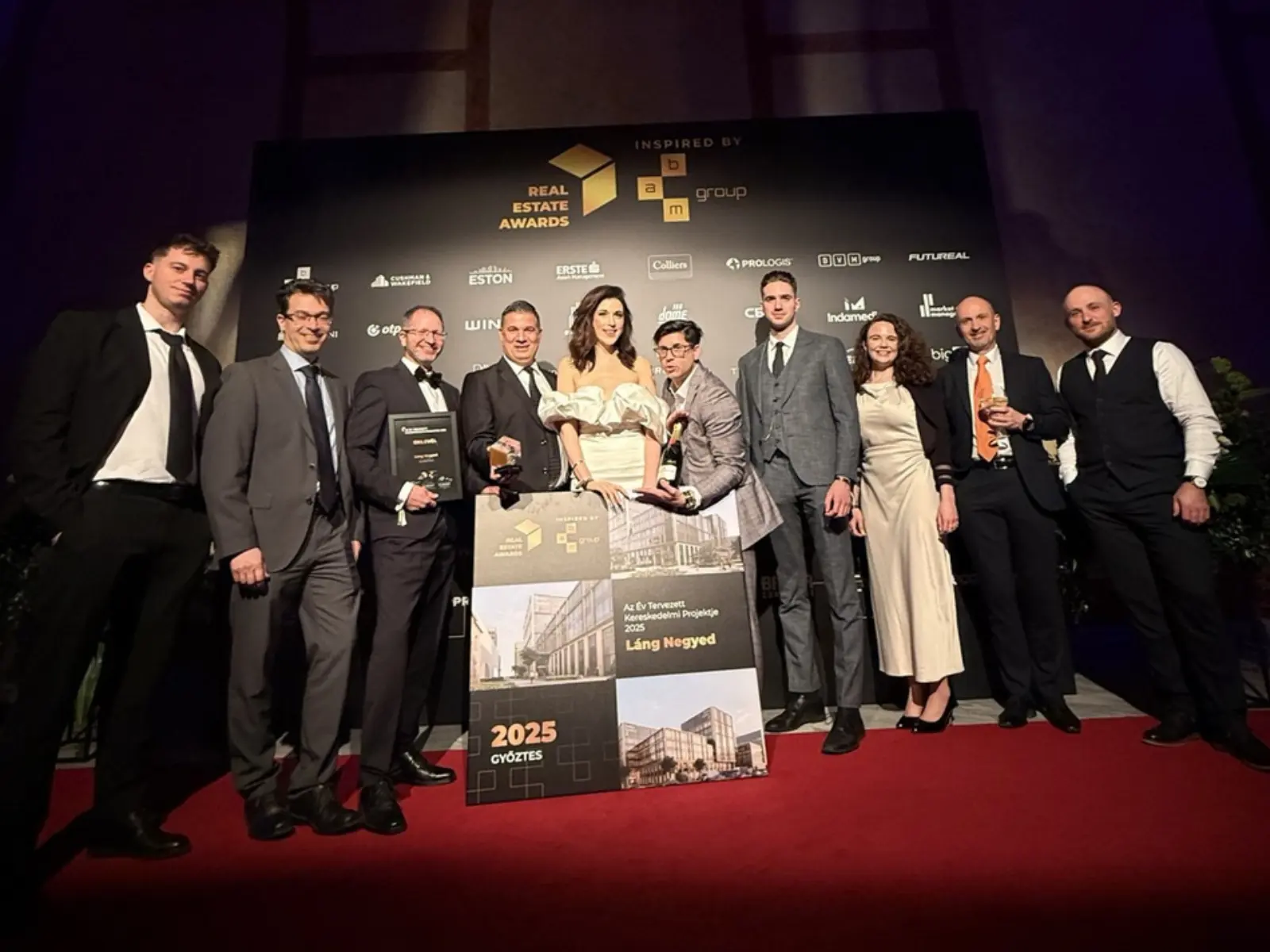 A Láng Negyed projekt az Év Tervezett Kereskedelmi projektje lett a 2026-os Real Estate Awards versenyében – a díjat február 26-án a Pesti Vigadóban adták át Zentai Péternek, a beruházó Southblaze Kft. ügyvezetőjének.