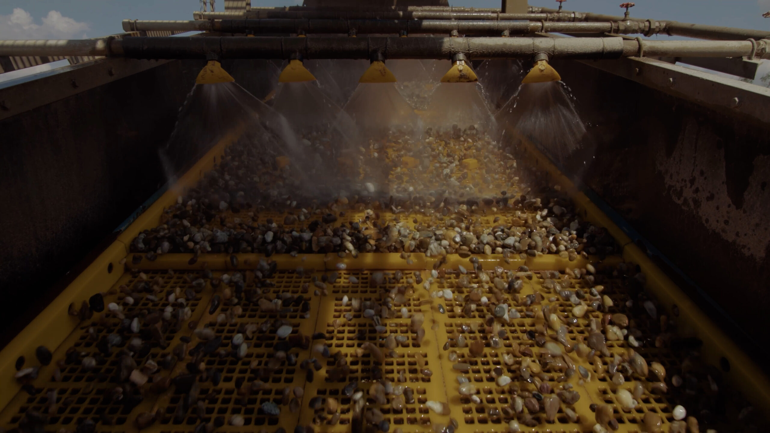 A parton egy szintén elektromos meghajtású szállítószalag továbbítja a haszonanyagot egy nagytérfogatú nyersanyagdepóra, közvetlenül a kavicsosztályozó elé.