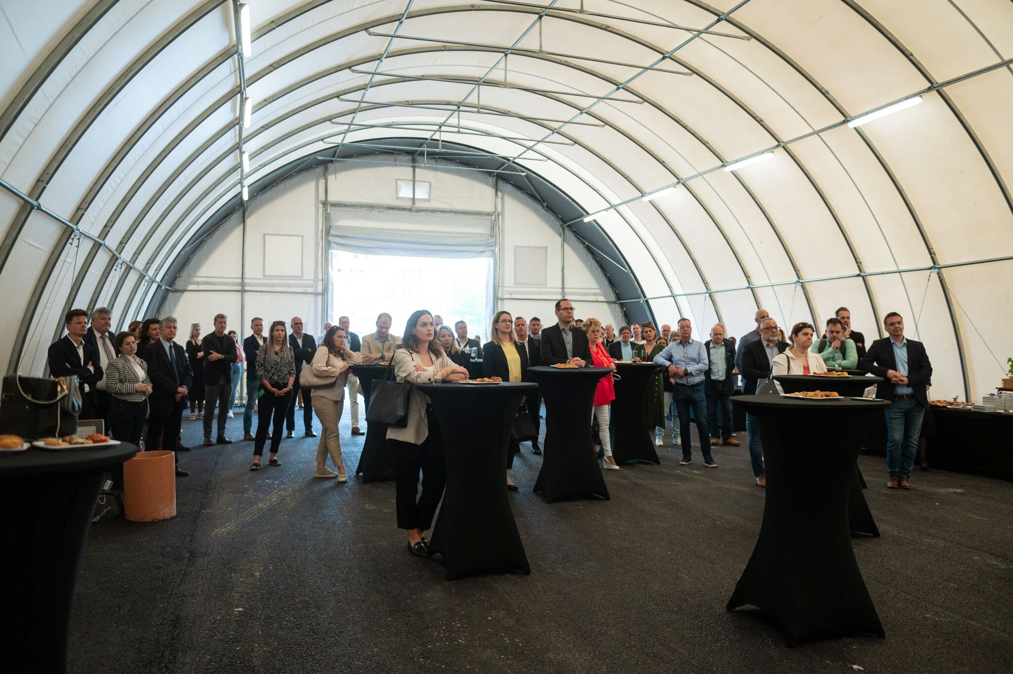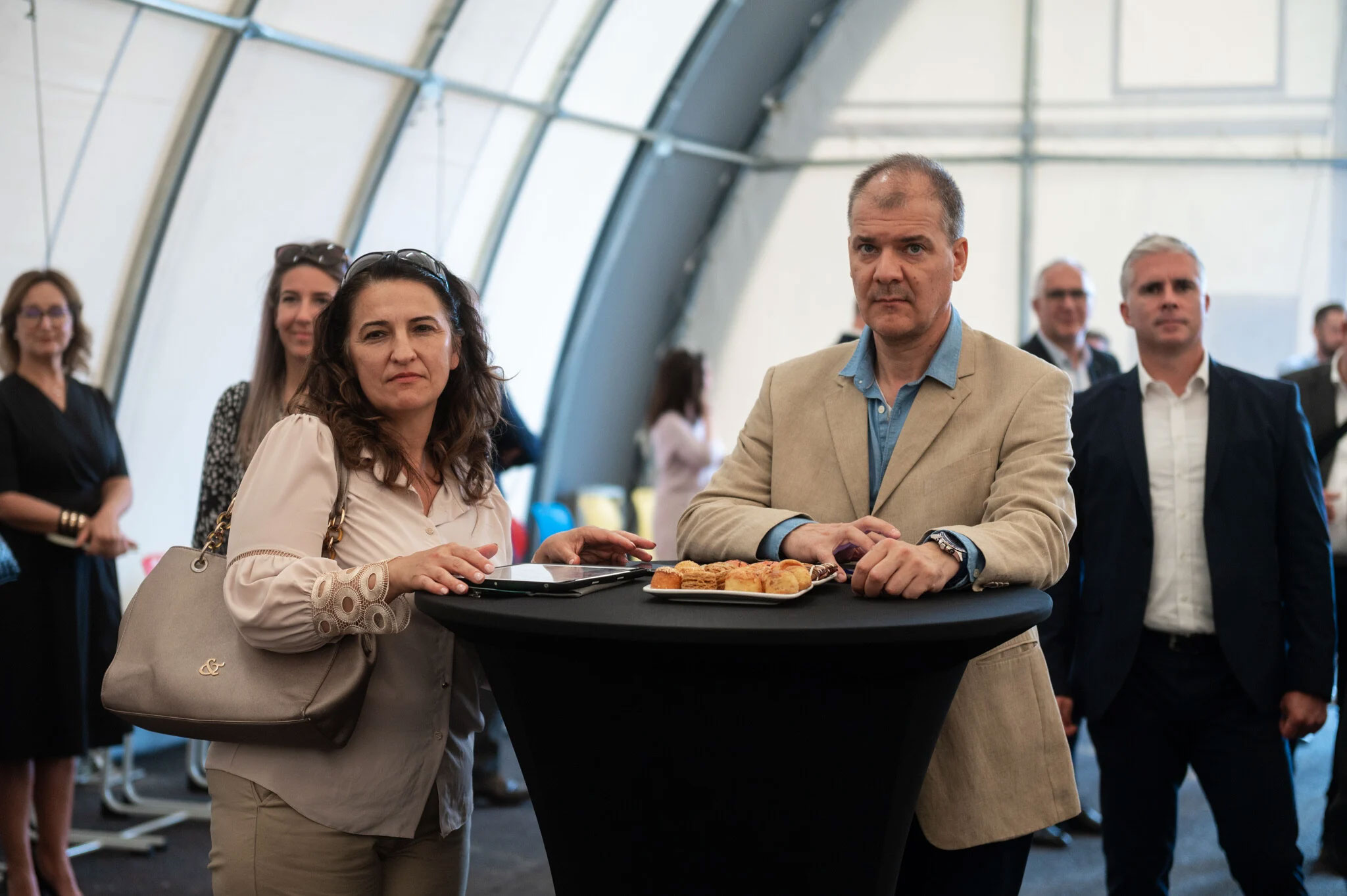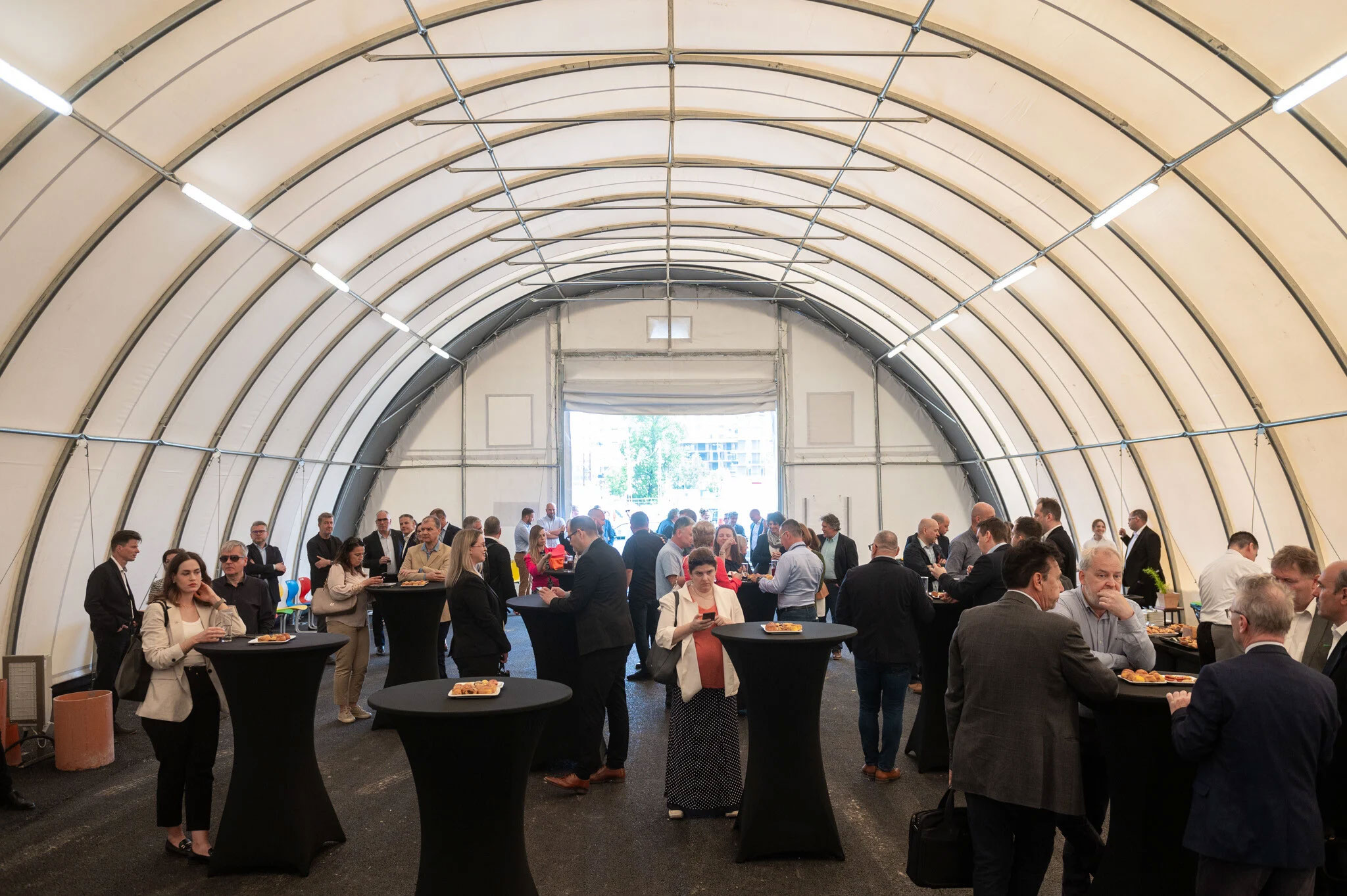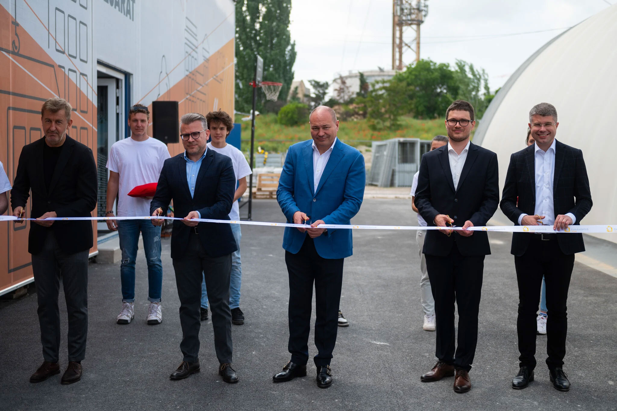 Az esemény végén Balázs Attila, a Bayer Construct elnök-vezérigazgatója, Vida Tamás, a KÉSZ Csoport vezérigazgatója, Scheer Sándor, a Market elnök-vezérigazgatója illetve Ágh Péter, az Építési és Közlekedési Minisztérium állami beruházások társadalmi koordinációjáért felelős államtitkára, valamint Tóth Áron, a Tudásépítő-Team Ágazati Képzőközpont Nonprofit Zrt. vezérigazgatója ünnepélyesen átvágták a központ átadását szimbolizáló szalagot.